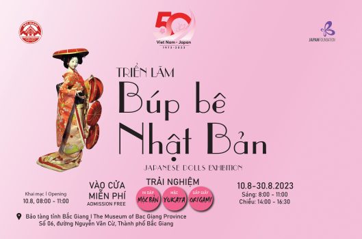 Nhân dịp kỷ niệm 50 năm thiết lập quan hệ ngoại giao Nhật Bản – Việt Nam (21/9/1973 – 21/9/2023), nhằm góp phần quảng bá những nét đẹp văn hóa Nhật Bản đến với nhân dân Việt Nam, Sở Văn hóa, Thể thao và Du lịch tỉnh Bắc Giang phối hợp cùng Trung tâm Giao lưu Văn hóa Nhật Bản tại Việt Nam hân hạnh giới thiệu một triển lãm đặc sắc mang tên “Búp bê Nhật Bản”. Triển lãm sẽ được tổ chức tại Bảo tàng tỉnh Bắc Giang (Số 06, đường Nguyễn Văn Cừ) từ ngày 10/8 đến ngày 30/8/2023.